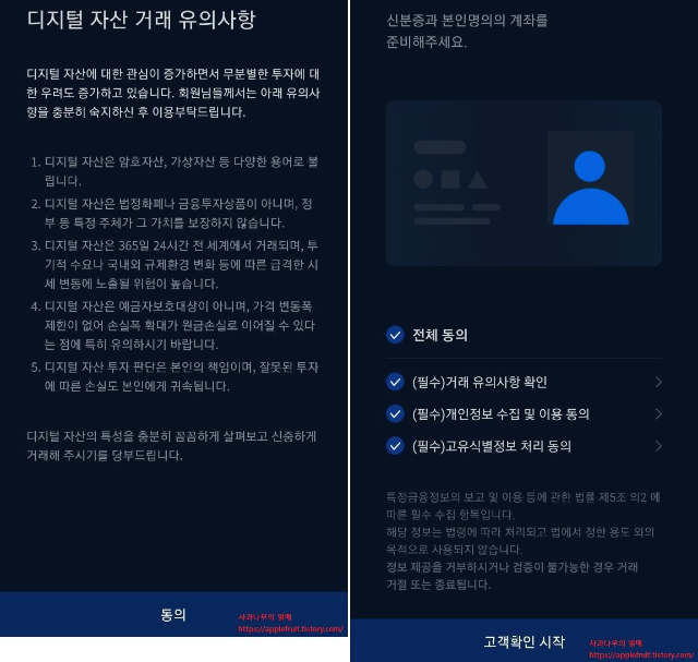 최근 가상화폐 거래소 특금법이 시행된 이후 거래소에서 고객확인을 진행한다고 공지가 올라왔습니다