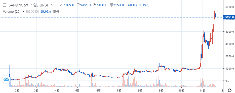 가격이 급등한 이유는 샌드박스도 NFT와 관련이 있기 때문 최근 화재가 되어 오른 듯합니다