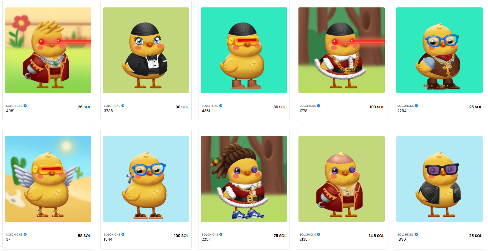 현재 여러 캐릭터가 올라와 있습니다 가격을 보시면 26 SOL,30 SOL 등 다양합니다