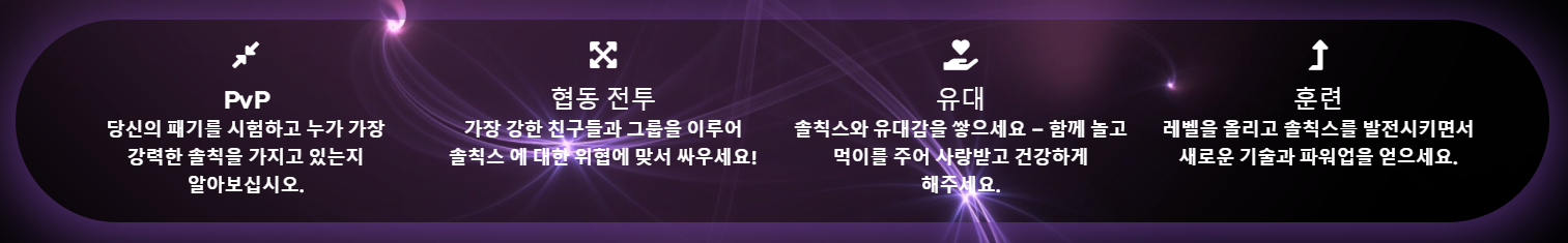 솔칙스는 솔칙스라는 캐릭터로 PvP, 협동 전투, 유대, 훈련 등을 통해 게임을 진행합니다