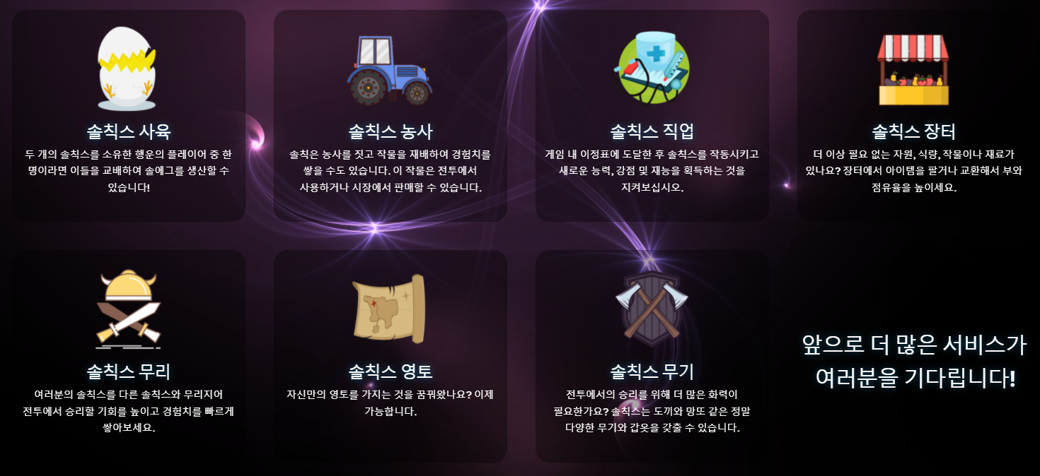 솔칙스는 솔라나 블록체인에서의 NFT PvP와 P2E게임 생태계를 목표로 합니다