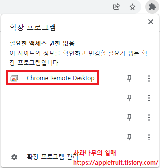 3. 설치가 완료되셨으면 크롬 확장 프로그램에서 Chrome Remote Desktop를 실행시켜 주세요
