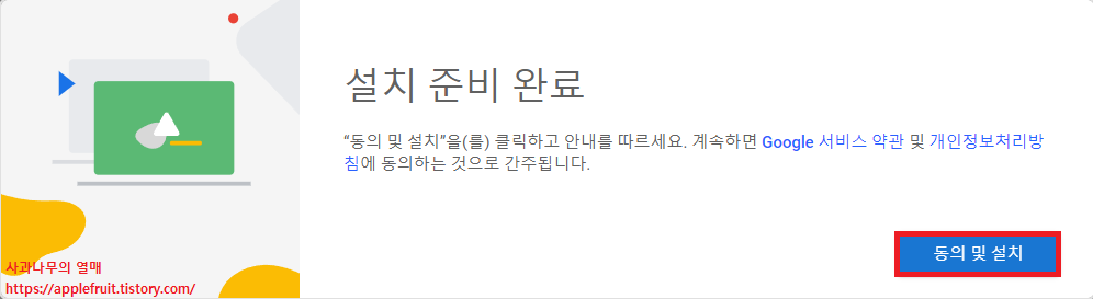 아래에 동의 및 설치를 눌러주시면 됩니다
