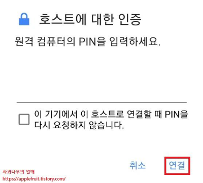 연결을 누르시면 스마트폰에서 PC 화면을 볼 수 있습니다