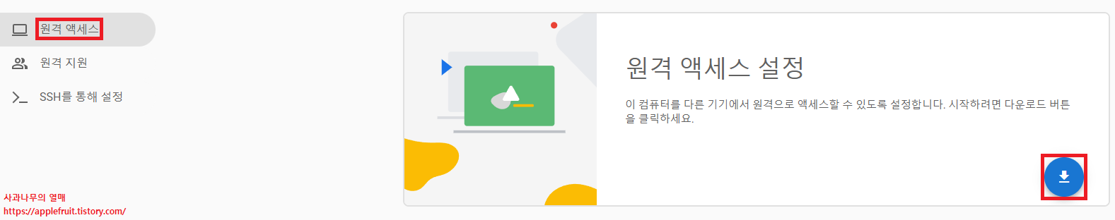 4. 아래와 같이 나오시면 왼쪽에 원격 액세스를 클릭하시고 오른쪽에 다운로드 표시를 눌러주세요