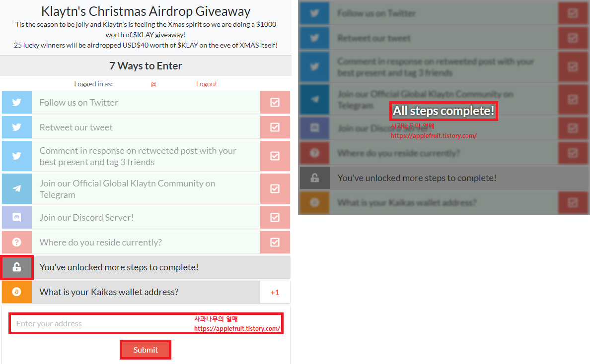 클레이튼(Klaytn) 크리스마스 에어드랍 이벤트 받기