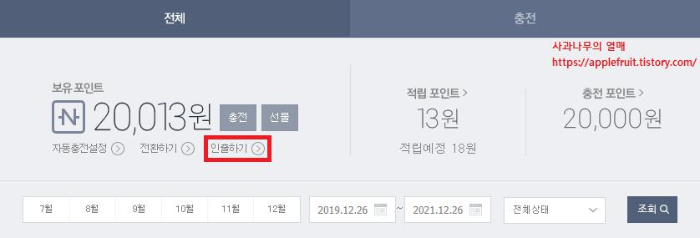옆에 보이는 적립 포인트는 따로 인출이 불가능합니다