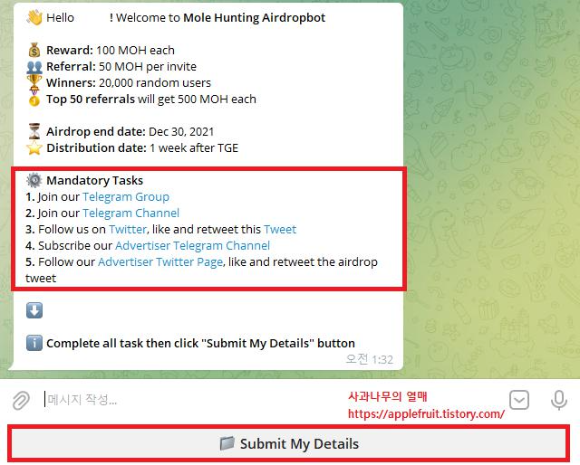 채널 : https://t.me/MoleHuntingAirdropbot