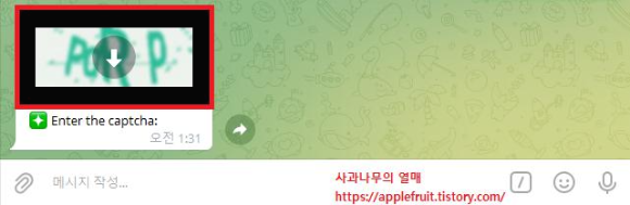 2. 보안 문자가 나올 텐데 아래 채팅에 입력을 하시면 됩니다