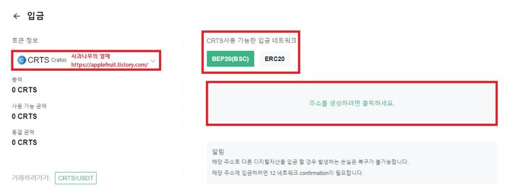 * 같은 토큰이더라도 입금 네트워크가 다르면 토큰이 손실될 수 있습니다