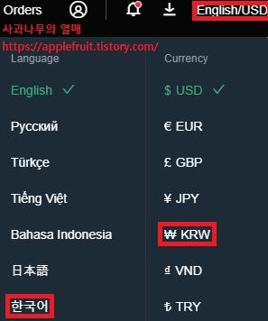* MEXC 거래소는 한글, 원화 표시를 지원하므로 설정을 변경하면 쉽게 이용하실 수 있습니다