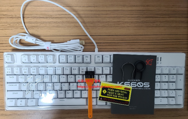 키보드 박스, 키보드, 키 커버, 키 캡 리무버, 스위치 리무버, 매뉴얼, PC방 전용 스티커, 청소용 브러쉬