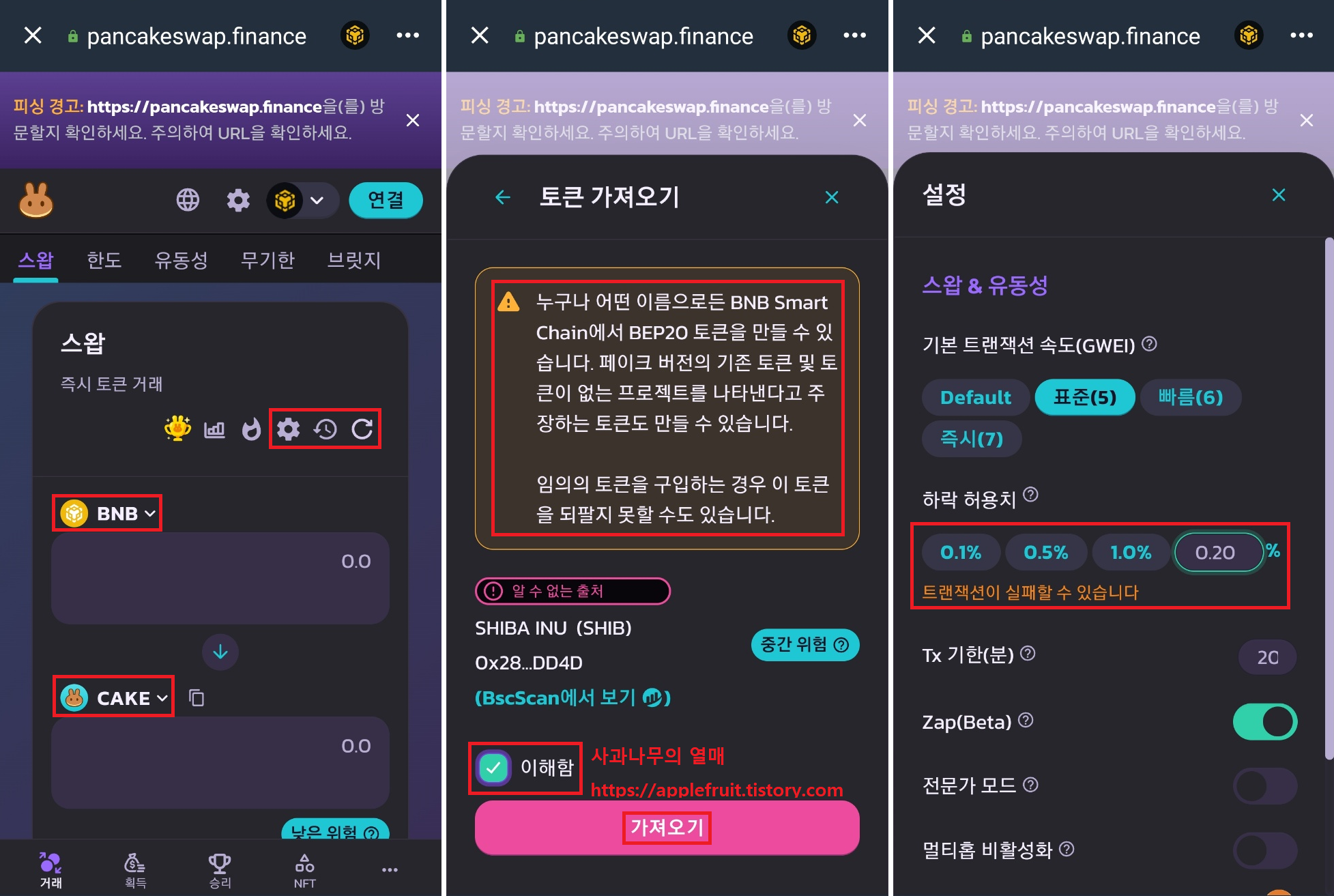 그중 많이 사용하는 팬케이크 스왑(PancakeSwap)을 기준으로 설명을 드리겠습니다