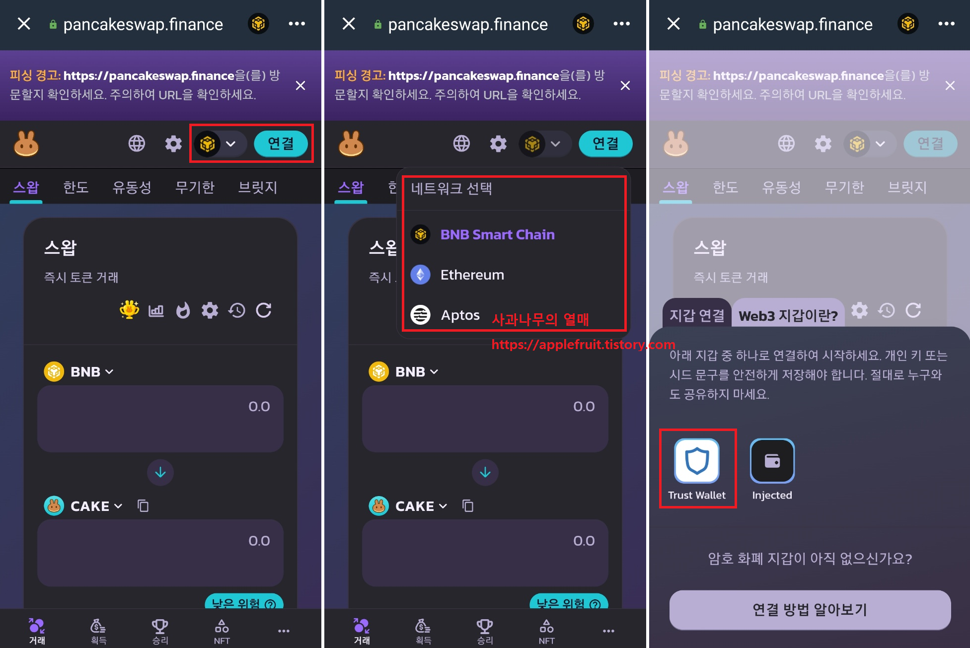 설명 순서는 Trust Wallet를 이용해서 팬케이크 스왑으로 이동 후 거래하는 방법으로 설명을 드리겠습니다