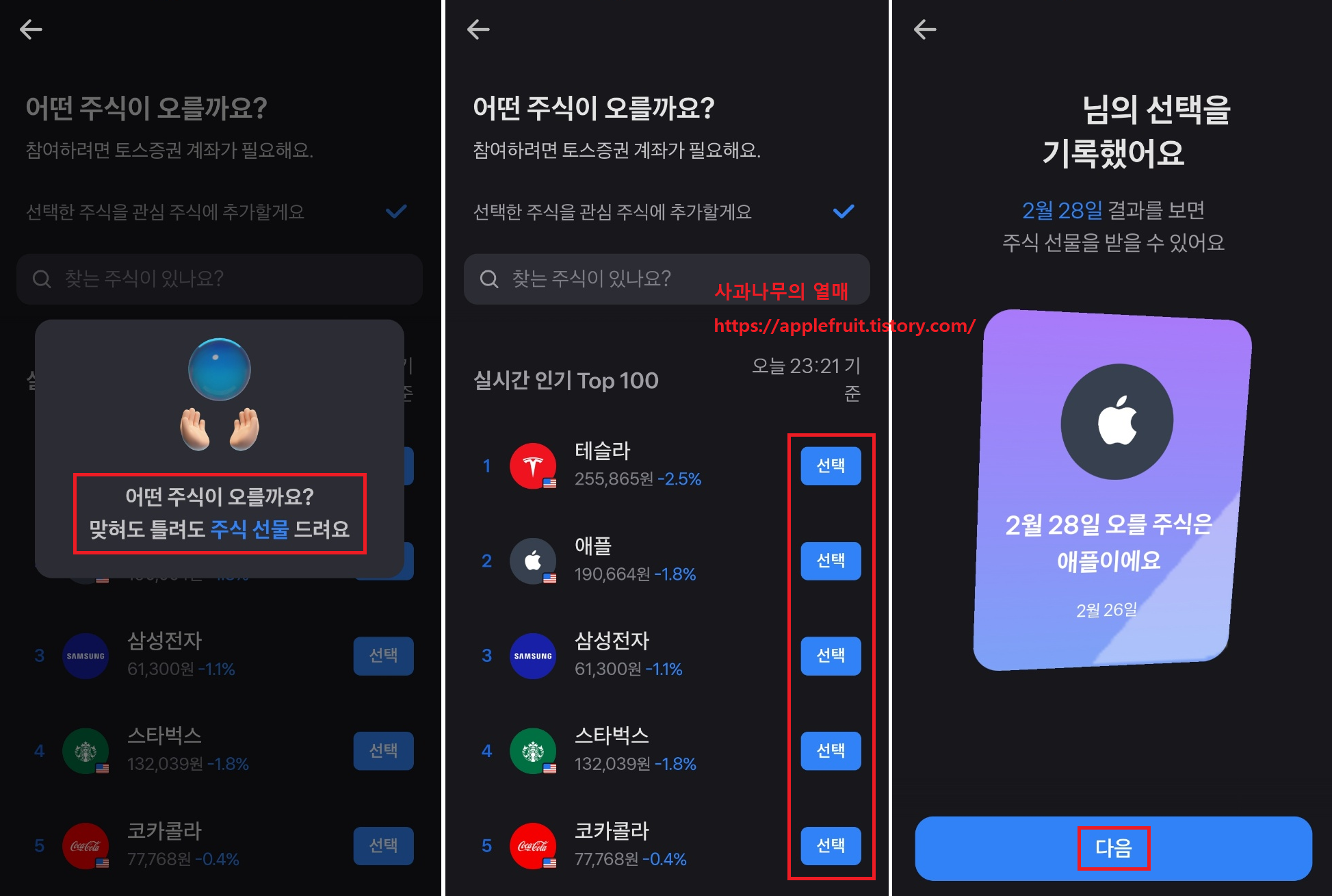 3. 안내에서 나와 있듯이 맞혀도 틀려도 주식을 받으실 수 있습니다