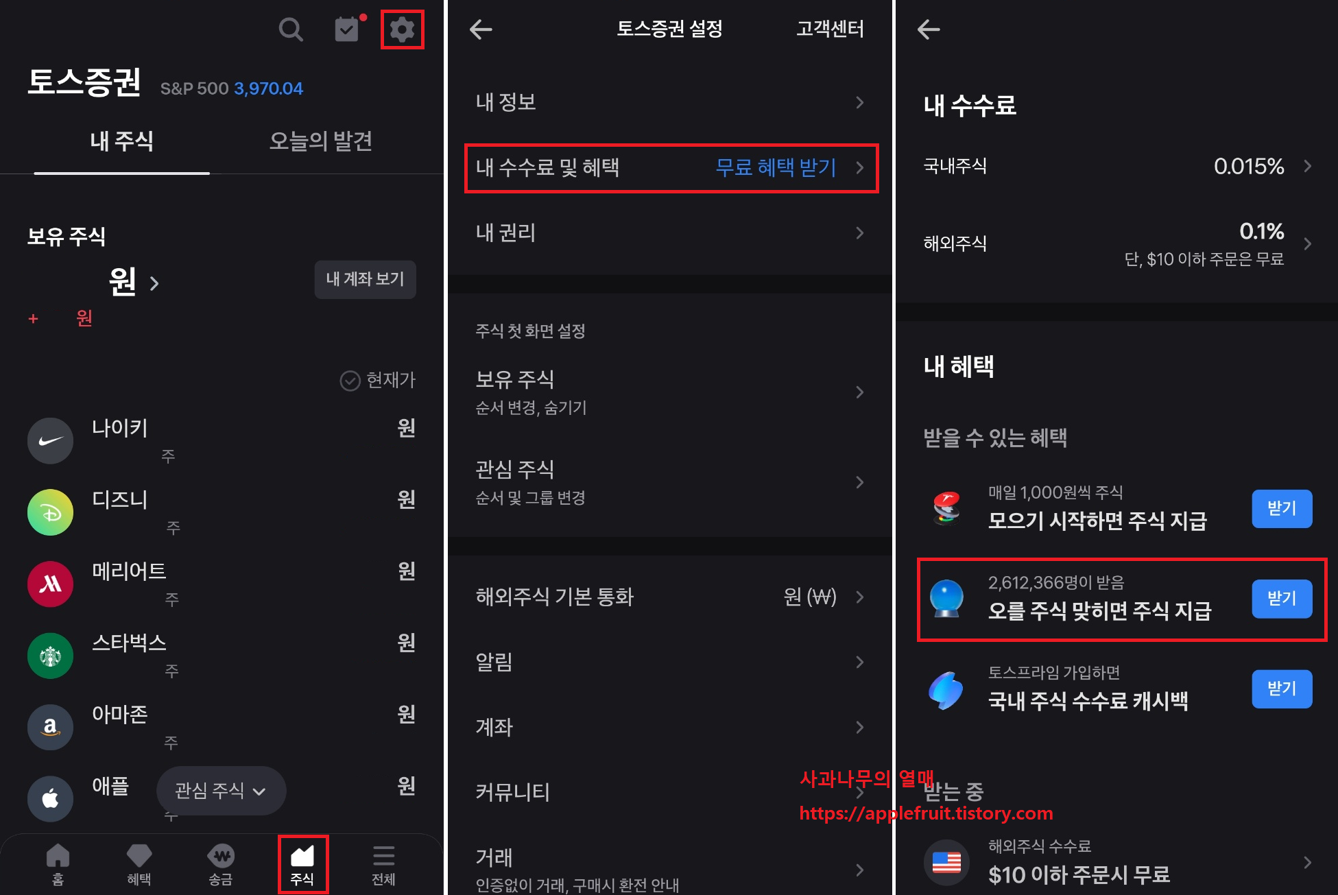 토스증권 설정이 나오는데 내 수수료 및 혜택을 눌러주세요