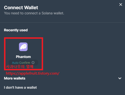 3. 사용 중인 지갑이 나올 텐데 현재 Phantom을 사용 중이므로 Phantom을 클릭하겠습니다
