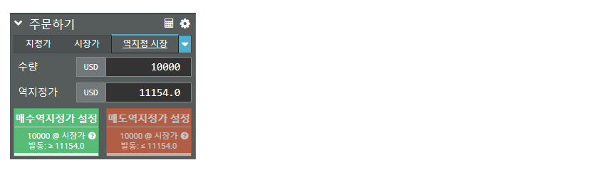 역지정 시장 : 만약 현제 가격이 11154 일 경우 11000에 가면 주문이 들어가는 겁니다