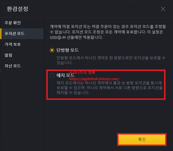 바이낸스(Binance) 양방향 포지션 설정, 오픈/ 클로즈 방법