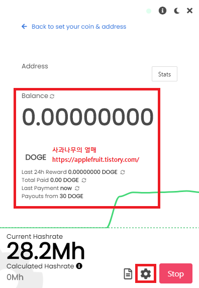 채굴을 정지시키고 싶으시면 Stop를 누르시면 됩니다