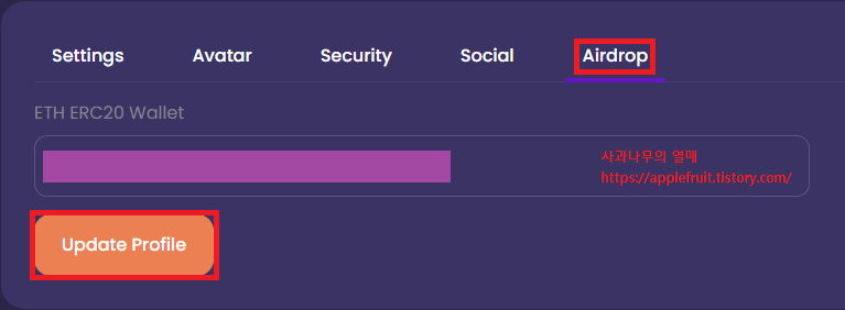 그 후 아래 ETH ERC20 Wallet 부분에 지갑 주소를 넣어주세요