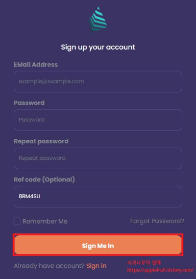 다 작성 후 아래 Sign Me in을 눌러주세요