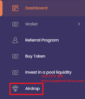 들어가셔서 Airdrop를 눌러 주세요