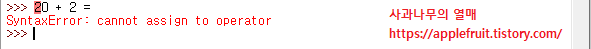 * 저번 시간 마지막에도 말씀드렸다시피 =을 입력하시면 오류가 뜹니다