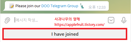 7. 텔레그램 가입을 완료하셨으면 아래 I have joined를 눌러주세요