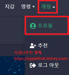 오른쪽 상단을 보시면 계정 -> 프로필을 눌러주세요