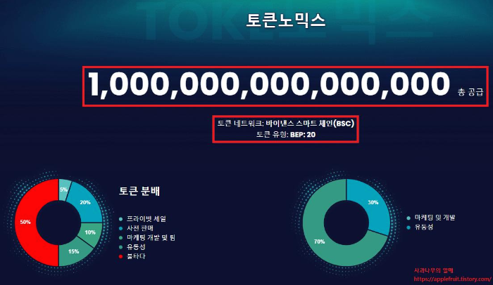 아래를 같이 보시면 공급량은 총 1,000,000,000,000,000 1 경개입니다