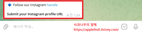 완료한 후 아래 대화창에 트위터 프로필 링크를 입력해 주세요