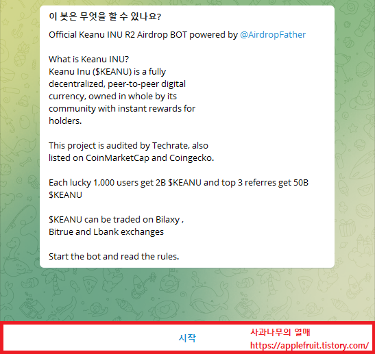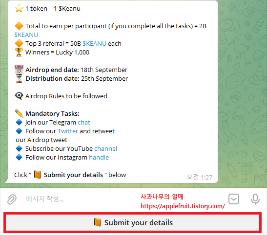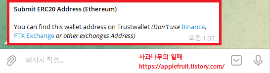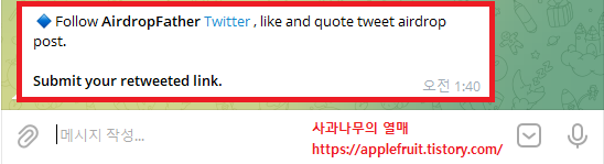 1. 아래 에어드랍을 배포하는 텔레그램 사이트로 들어가 주세요