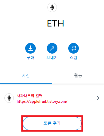 그 후 아래 토큰 추가 버튼을 눌러주시면 토큰이 추가됐는 걸 확인하실 수 있습니다