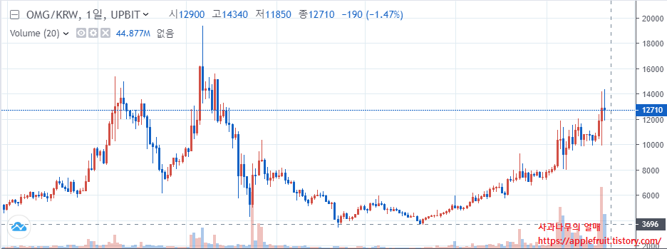 오미세고는 최근 호재 소식이 나오면서 급등하는 모습을 보였습니다