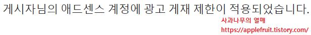 구글 애드센스 계정에 광고 게재 제한이 적용되었습니다
