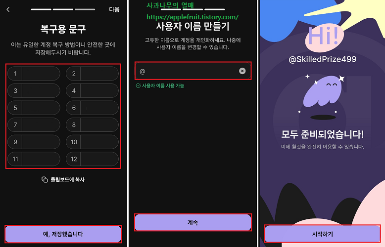복구용 문구를 확인하신 뒤 잘 보관하세요